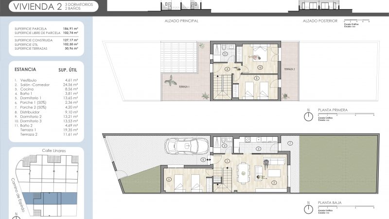 El proyecto desarrolla viviendas unifamiliares adosadas con parcela privativa y sin ningún tipo de comunidad de propietarios, mostrando su espíritu de viviendas individualizadas con un diseño moderno y destacando sus espacios exteriores a través de sus amplias terrazas.